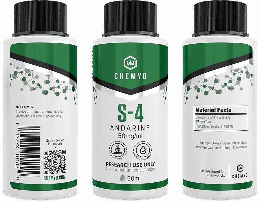 Andarine S4 Solution sold by Chemyo Labs is intended strictly for laboratory research purposes. These materials are not approved for human or veterinary use. Researchers are responsible for understanding and complying with applicable regulations in their jurisdiction.