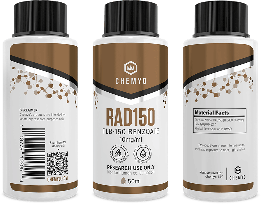Buy RAD150 Solution 10mg/ml (50ml) from Chemyo Labs. Third-party tested for identity, purity, and concentration. Batch-coded, induction sealed, discreet US & international shipping.