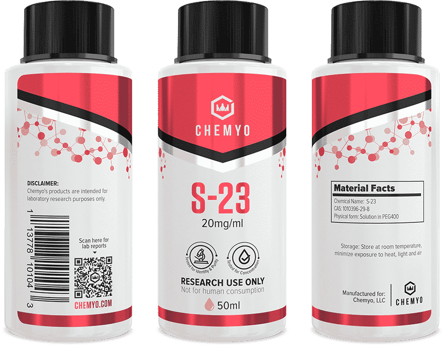 Buy S23 SARM solution 20mg/ml (50ml) from Chemyo Labs. Third-party tested S-23 SARM with verified purity, batch tracking, and discreet shipping across the USA, Australia, and Europe.