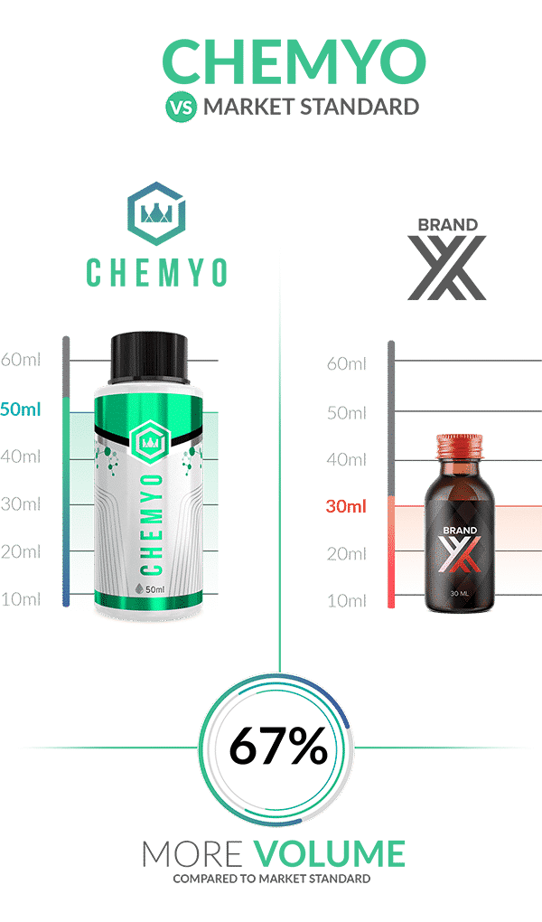 Most SARMs suppliers offer smaller 30ml solutions. Chemyo Labs provides a 50ml calibrated solution, delivering nearly 70% more usable research volume per bottle. This extended volume allows investigators to conduct longer studies or multiple experimental protocols without the need for frequent reordering.